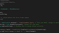 Introduction In class last week, thanks to another student’s help, I was able to resolve the issues with Json I had last week. The students in charge of combat will be able to adjust the stats to wh...